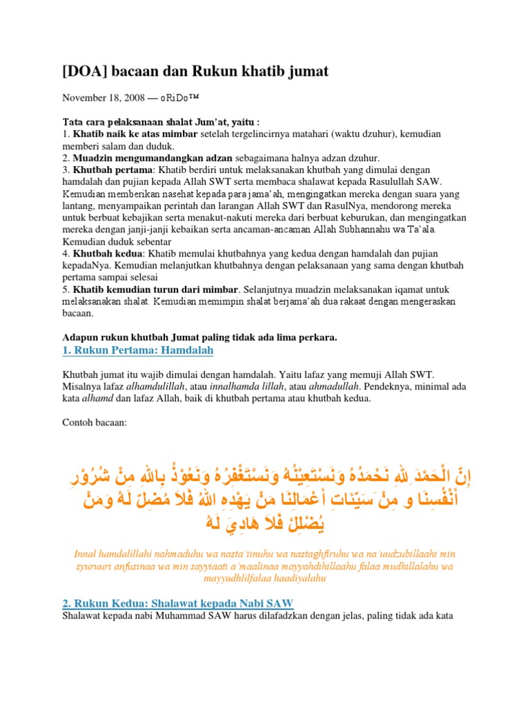 Doa Bacaan Dan Rukun Khatib Jumat