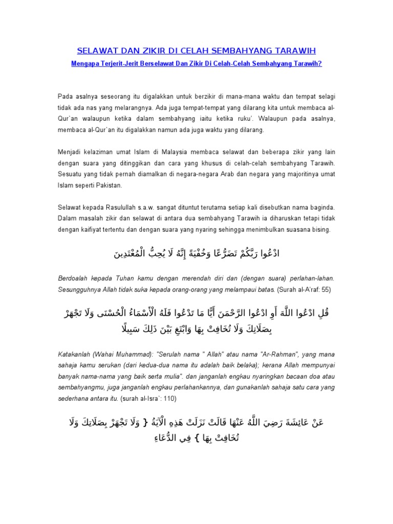 Bacaan Selawat Zikir Solat Sunat Terawih Solat Islamic Inspirational Quotes Inspirational Quotes