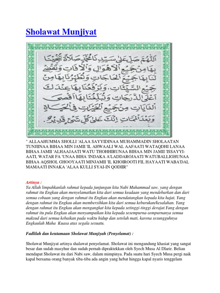 SELAWAT MUNJIYAT صلوات مونجيه Munjiyah bererti penyelamat Dipetik dari kitab Minhajul Hasanat daripa Fajr-i-Munir dtulis oleh Ibn Fakhani ra bahawa terdapat seorang yang soleh dan. Selawat 80x Asar Jumaat Semoga kita semua beroleh syafaat dapat bertemubermimpi dengan Junjungan yang juga. Tetapi sebelum download sholawat nabi yang hendak dibagikan di dalam postingan sebaiknya kita membaca ulasan.