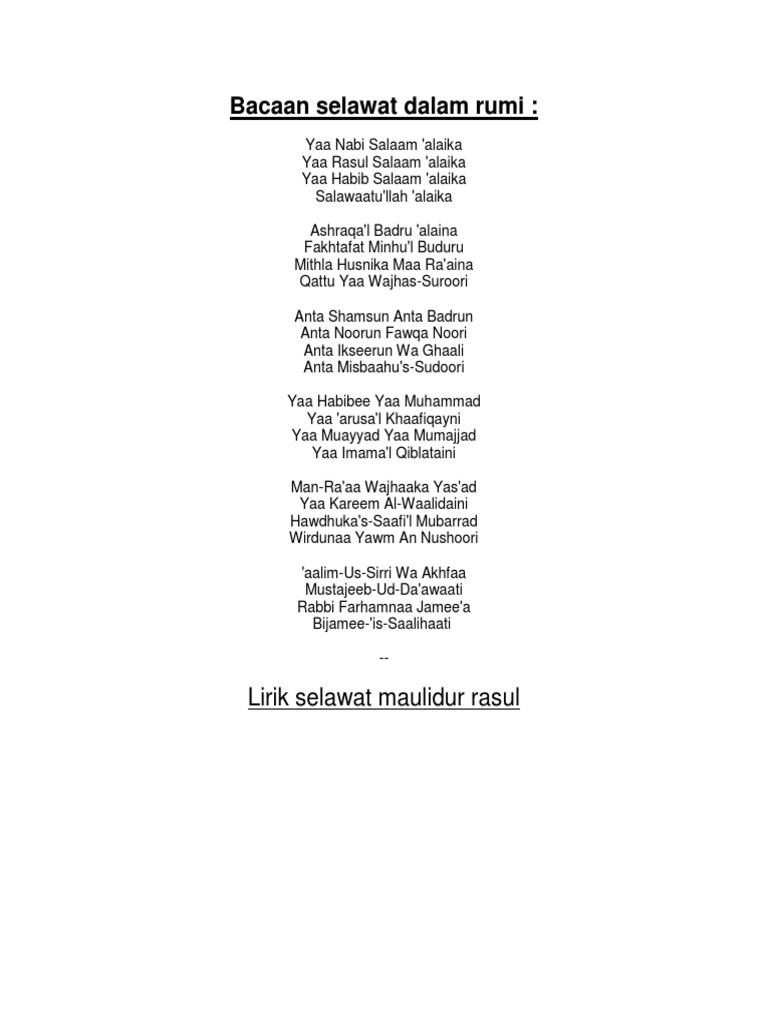 Penghulu Selawat Dengan Ejaan Rumi Ejaan Kutipan Agama Agama
